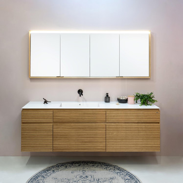 Drážkami buď v přírodní dubové dýze nebo v jakémkoliv laku můžete ozvláštnit nábytek do koupelny ze série MOOD, VIPP, VIPP M, CHIC nebo FOREVER.