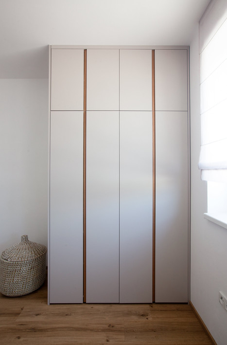 V zadání jsme kromě praktických požadavků měli volnost v návrhu barevných kombinací. Majitelům je totiž sympatická naše filozofie, že každý pokoj by měl být trochu jiný a měl by umět překvapit. Každá místnost zde má osobitý charakter, s detaily, které procházejí celým domem, např. v podobě zafrézovaných úchytek nebo kovových konstrukcí.