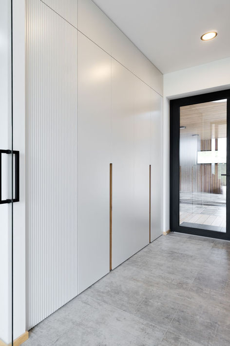 Při návrhu vstupní haly logicky vycházíme z potřeb zákazníků. Dispozici a členění nábytku důkladně promýšlíme, aby vstupní prostor dokázal pojmout vše potřebné, zůstal na pohled uklizený, designově čistý a ladil se zbytkem interiéru.